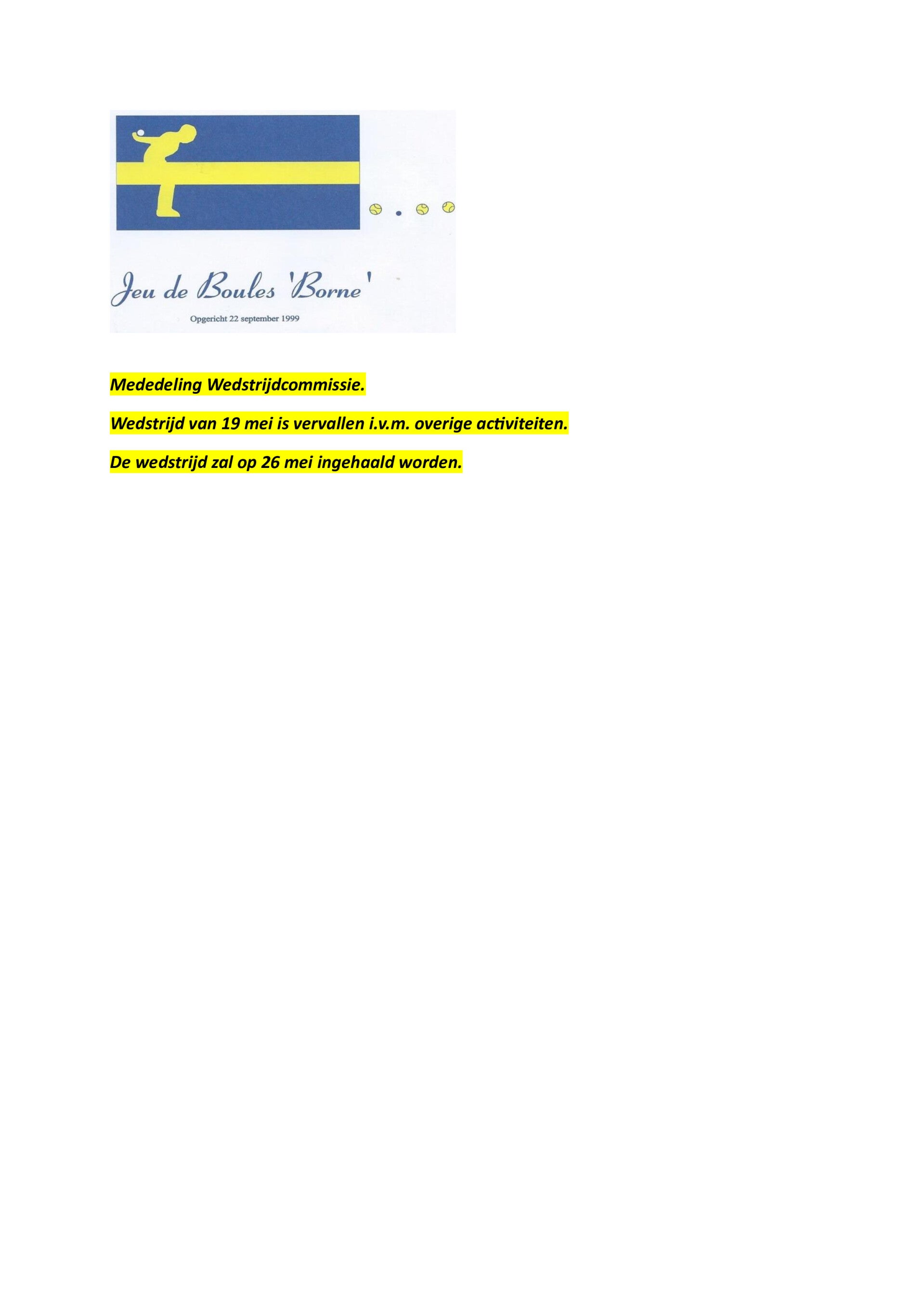 Welkom bij de Jeu de Boules vereniging Borne: Update 23-04-2026 Home mededeling wedstrijdcommissie